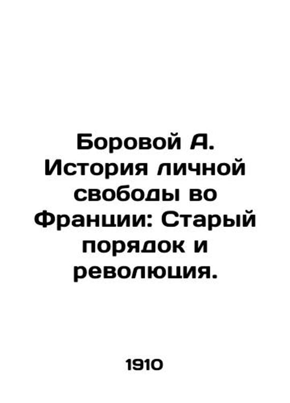 Borovoy A. The History of Personal Freedom in France: The Old Order and Revolution. In Russian (ask us if in doubt)/Borovoy A. Istoriya lichnoy svobody vo Frantsii: Staryy poryadok i revolyutsiya. Short description: In Russian (ask us if in doubt).Vol.I. The Only One. The Old Order and Revolution. 2 Parts. Moscow type. Imp. Moscow University 1910. 2 VI 470 p. We have thousands of titles and often several copies of each title may be available. Please feel free to contact us for a detailed description of the copies available. SKUalbb660b0d60ce29291