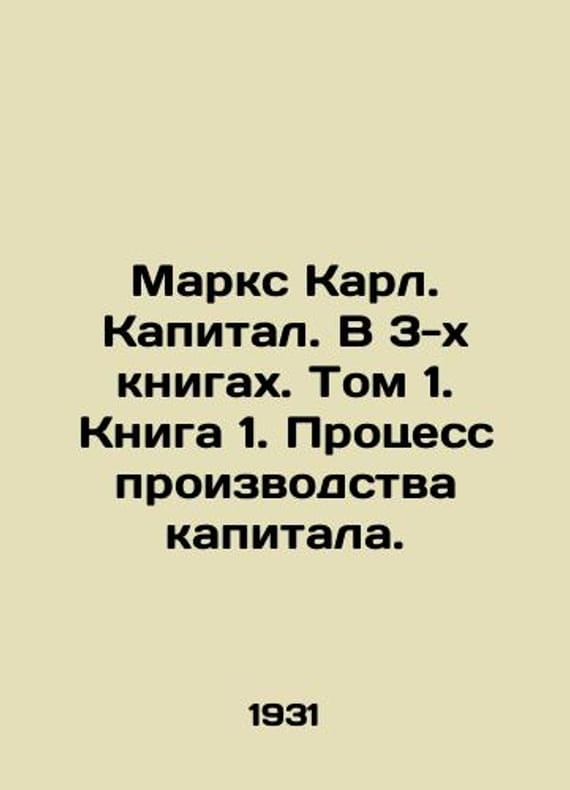 Marx Karl. Capital. In 3 Books. Volume 1. Book 1. The Process of Capital Production. In Russian /Marks Karl. Kapital. V 3-kh knigakh. Tom 1. Kniga 1. Protsess proizvodstva kapitala. Eighth edition. Prepared by F. Engels, printed from the Russian edition revised by I. Stepanov. M. Partizdat 1931. We have thousands of titles and often several copies of each title may be available. Please feel free to contact us for a detailed description of the copies available. SKUalbb6682333c7866ff6.
