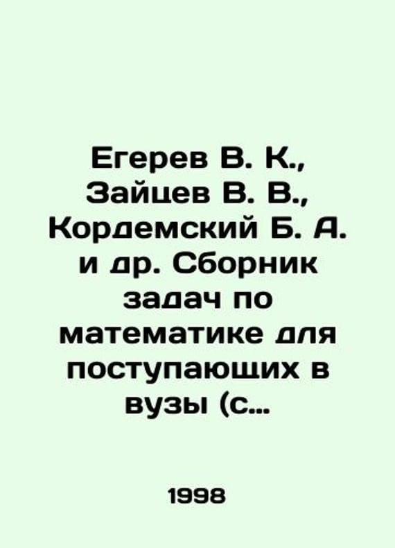 Egerev V. K., Zaitsev V. V., Kordemsky B. A. et al. A collection of mathematics problems for university entrants (with solutions). In two books. Book 1. Algebra. Edited by M. I. Skanavi. In Russian /Egerev V. K., Zaytsev V. V., Kordemskiy B. A. i dr. Sbornik zadach po matematike dlya postupayushchikh v vuzy (s resheniyami). V dvukh knigakh. Kniga 1. Algebra. Pod redaktsiey M. I. Skanavi. The eighth edition, corrected. Editor E. S. Mironenko. Moscow. Higher School. 1998. 528 p. We have thousands of titles and often several copies of each title may be available. Please feel free to contact us for a detailed description of the copies available. SKUalbb6ab29a82bd48595.