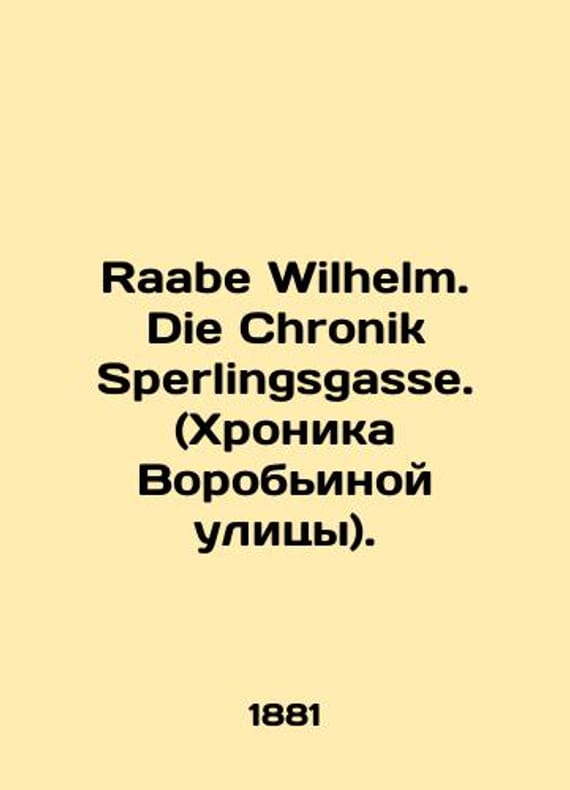 Raabe Wilhelm. Die Chronik Sperlingsgasse. (Chronicle of Sparrow Street). In German /Raabe Wilhelm. Die Chronik Sperlingsgasse. (Khronika Vorobinoy ulitsy). In German. Berlin. G. Groteshe Verlagsbichhundlung. 1881. 193 pp. We have thousands of titles and often several copies of each title may be available. Please feel free to contact us for a detailed description of the copies available. SKUalbb744684ecd195b01.