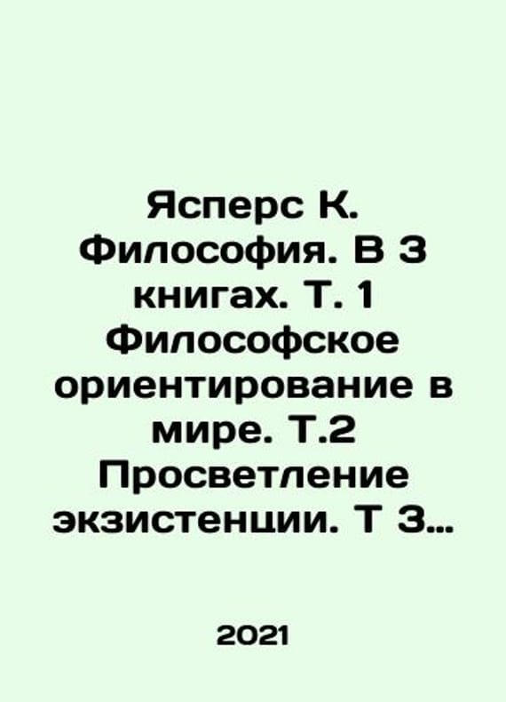 Yaspers K. Philosophy. In 3 books. Vol. 1 Philosophical Orientation in the World. Vol. 2 Enlightenment of Existence. Vol. 3 Metaphysics. In Russian /Yaspers K. Filosofiya. V 3 knigakh. T. 1 Filosofskoe orientirovanie v mire. T.2 Prosvetlenie ekzistentsii. T 3 Metafizika. M. Canon and 2021. 384 p. We have thousands of titles and often several copies of each title may be available. Please feel free to contact us for a detailed description of the copies available. SKUalbb7915ee4d3270a4c.