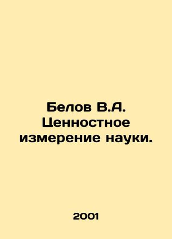 Belov V.A. Value Dimension of Science. In Russian /Belov V.A. Tsennostnoe izmerenie nauki. M.: Idea-Press. 2001. 284s. We have thousands of titles and often several copies of each title may be available. Please feel free to contact us for a detailed description of the copies available. SKUalbb7fd8afeb43e67cc.