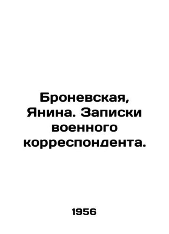 Bronevskaya, Janina. Notes by a war correspondent. In Russian /Bronevskaya, Yanina. Zapiski voennogo korrespondenta. Translated from Polish by M. I. Inostr. Lit. 1956. 464 p. We have thousands of titles and often several copies of each title may be available. Please feel free to contact us for a detailed description of the copies available. SKUalbb7ff9c1c4c993853.