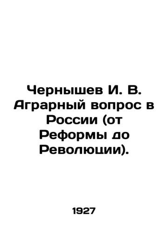 Chernyshev I. V. The Agrarian Question in Russia (from Reform to Revolution). In Russian (ask us if in doubt)/Chernyshev I. V. Agrarnyy vopros v Rossii (ot Reformy do Revolyutsii).1861-1917. Materials and Comments Kursk: Soviet Village 1927. 234s. We have thousands of titles and often several copies of each title may be available. Please feel free to contact us for a detailed description of the copies available. SKUalbb821c5c796433f8f