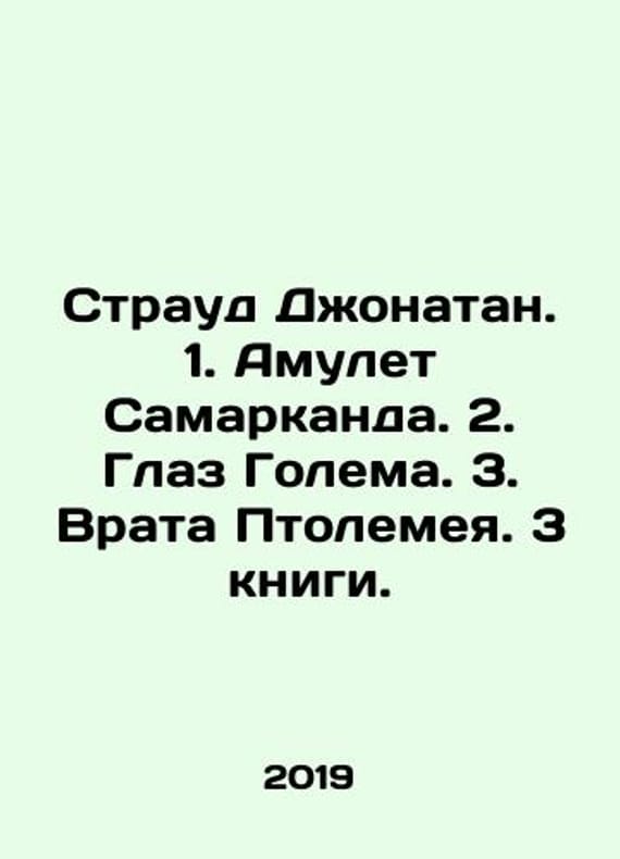 Stroud Jonathan. 1. Samarkand Amulet. 2. Golems Eye. 3. Ptolemys Gate. 3 books. In Russian /Straud Dzhonatan. 1. Amulet Samarkanda. 2. Glaz Golema. 3. Vrata Ptolemeya. 3 knigi. Bartimeus Trilogy. Book 1-3. Translation from English by A. Khromova. Moscow. St. Petersburg Exmo, Domino. 2005, 2019. 2020. 608 p. We have thousands of titles and often several copies of each title may be available. Please feel free to contact us for a detailed description of the copies available. SKUalbb857ad86441c9274.