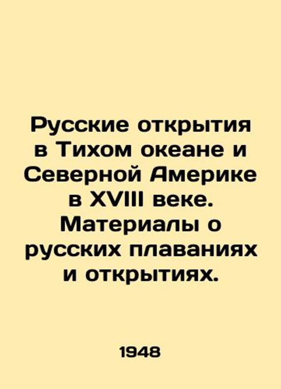 Russian discoveries in the Pacific and North America in the 18th century. Materials on Russian voyages and discoveries. In Russian /Russkie otkrytiya v Tikhom okeane i Severnoy Amerike v XVIII veke. Materialy o russkikh plavaniyakh i otkrytiyakh. In Memory of G.I. Shelikhov (to the 200th anniversary of his birth). Under the editorship and with the introduction of the State Publishing House of Geography, 1948. 384 p. We have thousands of titles and often several copies of each title may be available. Please feel free to contact us for a detailed description of the copies available. SKUalbb88d74b2f46e7094.