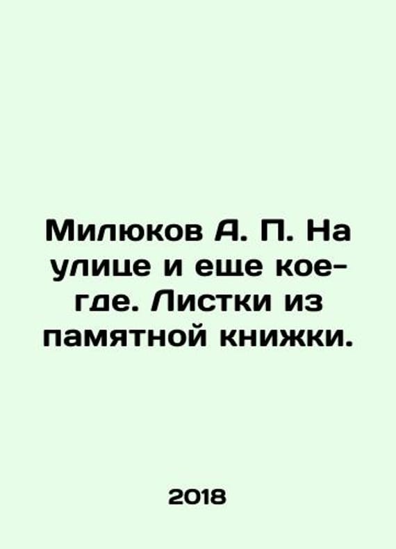 Milyukov A.P. On the street and elsewhere. Leaflets from the commemorative book. In Russian /Milyukov A. P. Na ulitse i eshche koe-gde. Listki iz pamyatnoy knizhki. Tyre Room 5, Moscow Publishing House, V. Sekachev, 2018, 244s. We have thousands of titles and often several copies of each title may be available. Please feel free to contact us for a detailed description of the copies available. SKUalbb890fdf86c7bdd75.
