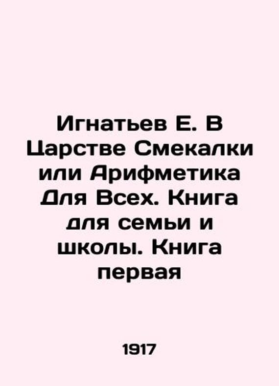 Ignatiev E. In the Kingdom of Smart or Arithmetic For All. Book for Family and School. Book One In Russian (ask us if in doubt)/Ignatev E. V Tsarstve Smekalki ili Arifmetika Dlya Vsekh. Kniga dlya semi i shkoly. Kniga pervayaPetrograd: Edition of A.S. Suvorin Novoye vremya 1917 275 p. We have thousands of titles and often several copies of each title may be available. Please feel free to contact us for a detailed description of the copies available. SKUalbb8a2add31eefcd37