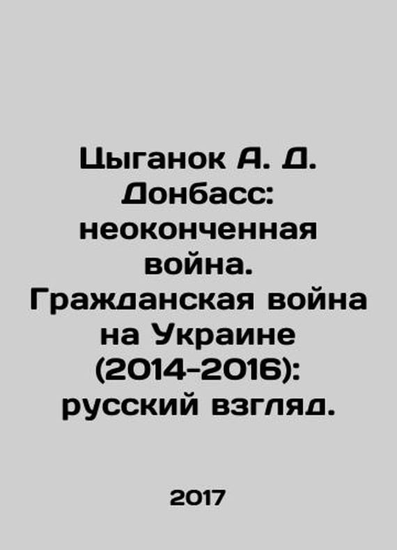A.D. Donbass Roma: The Unfinished War. The Ukrainian Civil War (2014-2016): The Russian View. In Russian /Tsyganok A. D. Donbass: neokonchennaya voyna. Grazhdanskaya voyna na Ukraine (2014-2016): russkiy vzglyad. Moscow. AIRO-XXI. 2017. 680 p. We have thousands of titles and often several copies of each title may be available. Please feel free to contact us for a detailed description of the copies available. SKUalbb8acd84158b54c59.