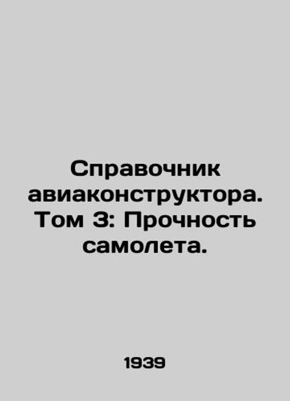 Aircraft Designers Guide. Volume 3: Aircraft Strength. In Russian /Spravochnik aviakonstruktora. Tom 3: Prochnost samoleta. Editor of the reference book A.A. Goryainov. Editor of Volume III of M.L. Lurie. M Central Aero-Hydrodynamic Institute named after Prof. N.E.Zhukovsky, 1939, 656 pp. We have thousands of titles and often several copies of each title may be available. Please feel free to contact us for a detailed description of the copies available. SKUalbb8bc2f227402839c.