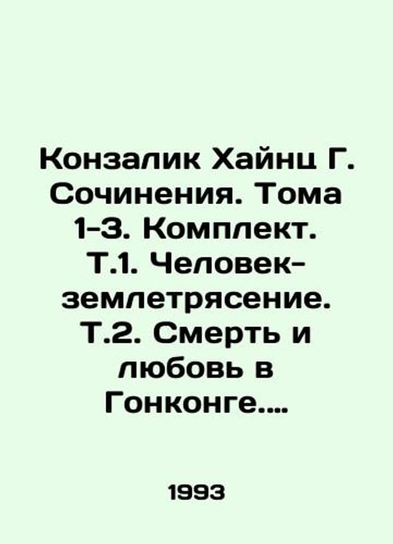 Konzalik Heinz G. Compositions. Volumes 1-3. Set. T.1. Earthquake Man. T.2. Death and Love in Hong Kong. T.3. Operation Dolphin. In Russian /Konzalik Khaynts G. Sochineniya. Toma 1-3. Komplekt. T.1. Chelovek-zemletryasenie. T.2. Smert i lyubov v Gonkonge. T.3. Operatsiya Delfin. M. Olympus 1993.We have thousands of titles and often several copies of each title may be available. Please feel free to contact us for a detailed description of the copies available. SKUalbb8c7d9e875ff3ce8.