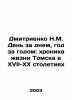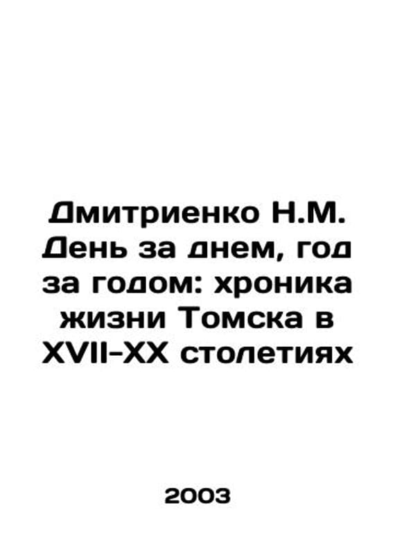 Dmitrienko N.M. Day by day, year by year: chronicle of Tomsks life in the seventeenth-twentieth centuries In Russian /Dmitrienko N.M. Den za dnem, god za godom: khronika zhizni Tomska v XVII-XX stoletiyakh Tomsk TSU 2003. 347s. We have thousands of titles and often several copies of each title may be available. Please feel free to contact us for a detailed description of the copies available. SKUalbb906b0c3e9d3545e.