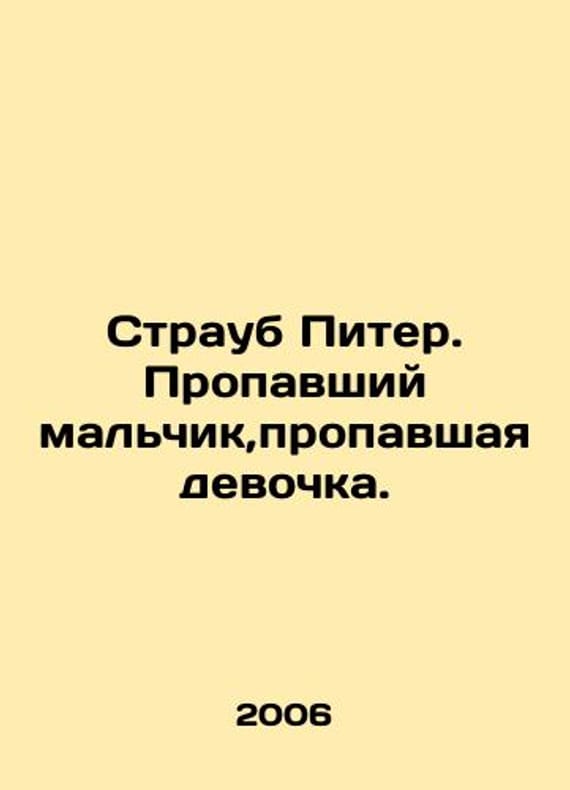 Straub Peter. A missing boy, a missing girl. In Russian /Straub Piter. Propavshiy malchik,propavshaya devochka. M.2006. 384 p.. We have thousands of titles and often several copies of each title may be available. Please feel free to contact us for a detailed description of the copies available. SKUalbb9214282ca1a0501.