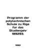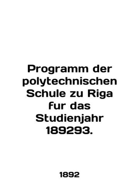 Program der polytechnischen Schule zu Riga fur das Studienjahr 189293. In English /Programm der polytechnischen Schule zu Riga fur das Studienjahr 189293. Riga. 1892. We have thousands of titles and often several copies of each title may be available. Please feel free to contact us for a detailed description of the copies available. The delivery of this book might be delayed beyond the usual timeframe due to extended processing and preparation before shipment, and faster shipping options are not offered. Please inform us if you need the order by a certain date or have a deadline.SKUalbb92ed4bf0894182a