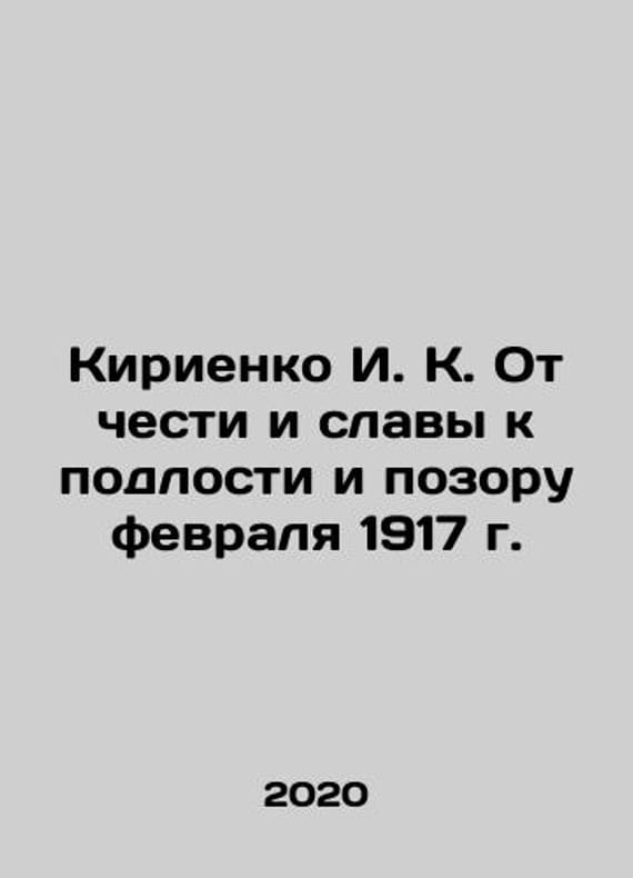 Kiriyenko I. K. From Honor and Glory to Meanness and Shame of February 1917 In Russian /Kirienko I. K. Ot chesti i slavy k podlosti i pozoru fevralya 1917 g. M. Veche 2020 352 p.. We have thousands of titles and often several copies of each title may be available. Please feel free to contact us for a detailed description of the copies available. SKUalbb963ac03739db8f9.