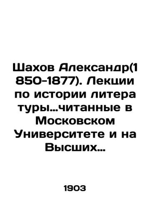 Shakhov Alexander (1850-1877). Lectures on the history of literature given at Moscow University and at Higher Womens Courses in Moscow. 1873-1875. In Russian (ask us if in doubt)/Shakhov Aleksandr(1850-1877). Lektsii po istorii literaturychitannye v Moskovskom Universitete i na Vysshikh Zhenskikh kursakh v Moskve.1873-1875.. Goethe and his time. Voltaire and his time. Essays on the literary movement in the first half of the 19th century. St.Petersburg Trenke and Fusno. 1903-1912.304s. SKUalbb9800975a937c1d4.
