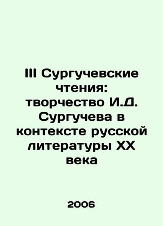 III Surguchev Readings: the Creativity of I.D. Surguchev in the Context of 20th Century Russian Literature In Russian /III Surguchevskie chteniya: tvorchestvo I.D. Surgucheva v kontekste russkoy literatury XX veka Compilation of the Proceedings of the International Scientific and Practical Conference (October 17-20, 2006). Issue 3 Fokin A.A. (ed.) Stavropol Stavropol Stavropol Book Publishing House: MSP 2006 400 p. We have thousands of titles and often several copies of each title may be available. Please feel free to contact us for a detailed description of the copies available. SKUalbb9ace2721bd3d3f0.