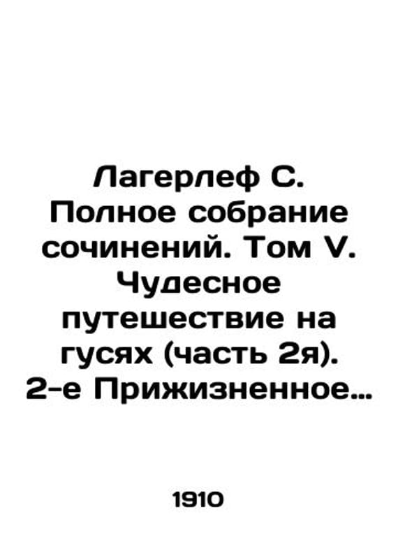 Lagerlof S. The Complete Collection of Works. Volume V. The Wonderful Journey on the Geese (Part II). 2nd Life Edition In Russian (ask us if in doubt)/Lagerlef S. Polnoe sobranie sochineniy. Tom V. Chudesnoe puteshestvie na gusyakh (chast 2ya).2-e Prizhiznennoe izdanie M. Sablin 1910. We have thousands of titles and often several copies of each title may be available. Please feel free to contact us for a detailed description of the copies available. SKUalbb9dfa01d2aabc10e