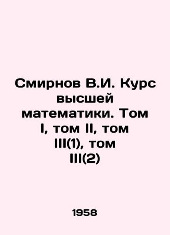 Smirnov V.I. Course of Higher Mathematics. Volume I, Volume II, Volume III (1), Volume III (2) In Russian /Smirnov V.I. Kurs vysshey matematiki. Tom I, tom II, tom III(1), tom III(2) M. Fizmatgiz 1958. 478s. We have thousands of titles and often several copies of each title may be available. Please feel free to contact us for a detailed description of the copies available. SKUalbba2e11f5e0c27569.