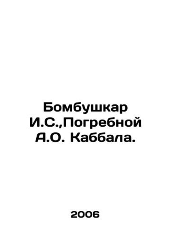 Bombushkar I.S., Pogrebnoy A.O. Kabbala. In Russian /Bombushkar I.S., Pogrebnoy A.O. Kabbala. Donetsk. Chestnut. 2006. 288 p. We have thousands of titles and often several copies of each title may be available. Please feel free to contact us for a detailed description of the copies available. SKUalbba4f504c528b94bb.