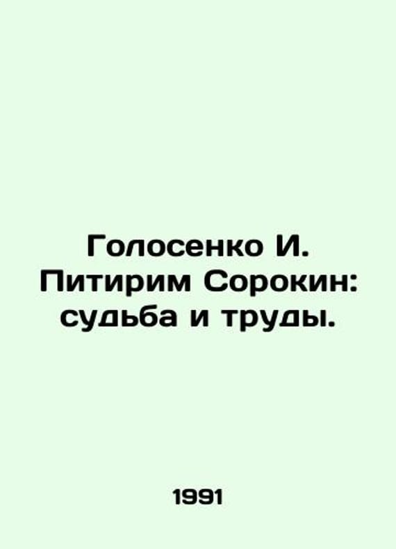 I. Pitirim Sorokin Golosenko: fate and work. In Russian /Golosenko I. Pitirim Sorokin: sudba i trudy. Syktyvkar 1991. We have thousands of titles and often several copies of each title may be available. Please feel free to contact us for a detailed description of the copies available. SKUalbba82f88bdc7a6736.