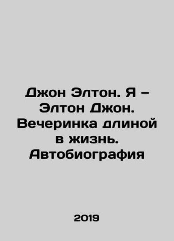 John Elton. I am Elton John. A party of a lifetime. Autobiography In Russian /Dzhon Elton. Ya Elton Dzhon. Vecherinka dlinoy v zhizn. AvtobiografiyaSeries: The Autobiography of the Great Man M Exmo, Revision 1 2019.We have thousands of titles and often several copies of each title may be available. Please feel free to contact us for a detailed description of the copies available. SKUalbbac01d5d793a8a93.