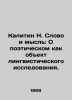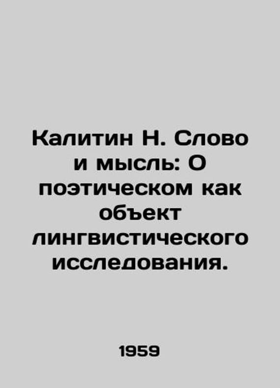 Kalitin N. Word and Thought: On Poetry as an Object of Linguistic Research. In Russian /Kalitin N. Slovo i mysl: O poeticheskom kak obekt lingvisticheskogo issledovaniya. Editor Z.S. Paperny. Artist V.I. Telepnev. M. Soviet writer 1959. 214 p. We have thousands of titles and often several copies of each title may be available. Please feel free to contact us for a detailed description of the copies available. SKUalbbaf412e09ea783a6.