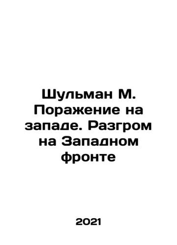 Shulman M. Defeat in the West. Defeat on the Western Front In Russian /Shulman M. Porazhenie na zapade. Razgrom na Zapadnom fronte Centropolygraph 2021. 400s. We have thousands of titles and often several copies of each title may be available. Please feel free to contact us for a detailed description of the copies available. SKUalbbb37e94168e18c5b.