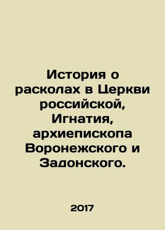 The story of schisms in the Church of Russia, by Ignatius, Archbishop of Voronezh and Zadonsky. In Russian /Istoriya o raskolakh v Tserkvi rossiyskoy, Ignatiya, arkhiepiskopa Voronezhskogo i Zadonskogo. Model 5 Moscow Publishing House, V. Sekachev, 2017, 361s. We have thousands of titles and often several copies of each title may be available. Please feel free to contact us for a detailed description of the copies available. SKUalbbb83218304430f4b.