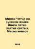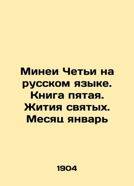 Mineis Cheti in Russian. Book Five. Lives of Saints. The month of January In Russian /Minei Cheti na russkom yazyke. Kniga pyataya. Zhitiya svyatykh. Mesyats yanvar The work of Metropolitan Dimitri was written in Church Slavonic, was published in four volumes, and the first book was published in Kyiv in 1689. The lives of the saints were arranged according to the dates of church holidays and began in September, at the beginning of the Church New Years Day Indiction. We have thousands of titles and often several copies of each title may be available. Please feel free to contact us for a detailed description of the copies available. SKUalbbb92f114c38615ff.