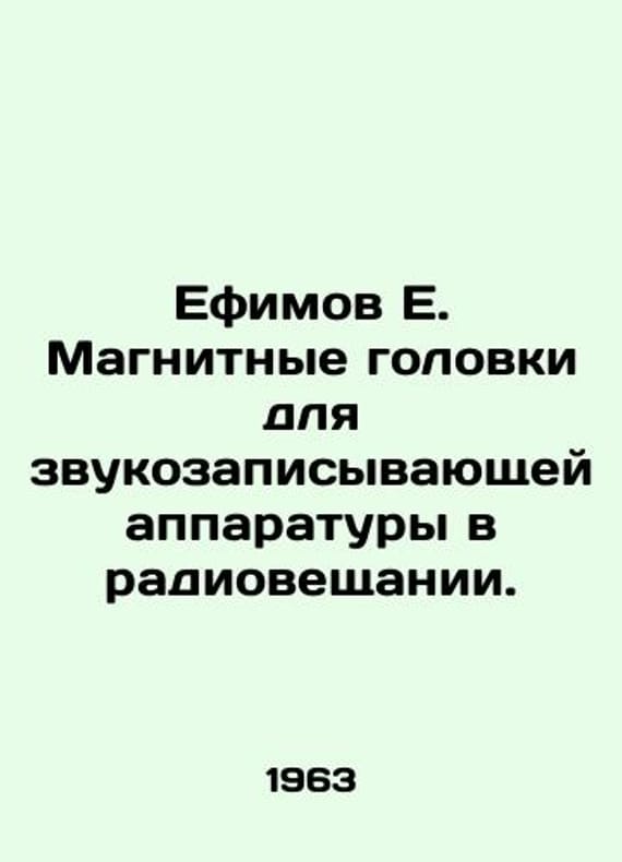 Efimov E. Magnetic heads for recording equipment in radio broadcasting. In Russian (ask us if in doubt)/Efimov E. Magnitnye golovki dlya zvukozapisyvayushchey apparatury v radioveshchanii.. description: In Russian (ask us if in doubt).USSR Council of Ministers Radio and Television Redizdat 1963 44 p. We have thousands of titles and often several copies of each title may be available. Please feel free to contact us for a detailed description of the copies available. SKUalbbbabe0c6b0838abd
