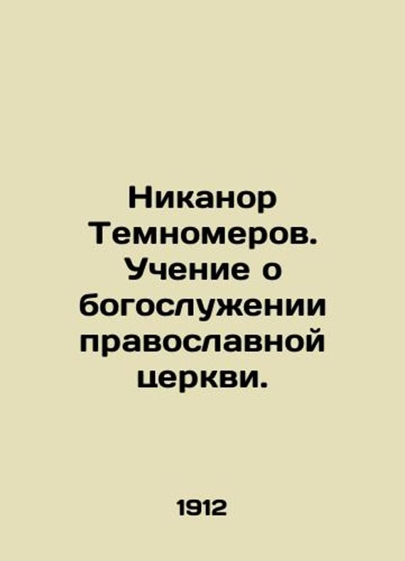 Nicanor Temnomer. The doctrine of the Orthodox Church. In Russian /Nikanor Temnomerov. Uchenie o bogosluzhenii pravoslavnoy tserkvi. Edition 11, amended. Compiled by the rector, Archpriest Niknor Temnomerov of Kavalersky Prince-Vladimir Cathedral. St. Petersburg. Legacy of the Salaevs-Typography of St. Petersburg, St. Petersburg, and the Publishing House of Difficulty, 1912. 141, 3 p. We have thousands of titles and often several copies of each title may be available. Please feel free to contact us for a detailed description of the copies available. SKUalbbbd2b4c96c3a015b.
