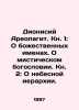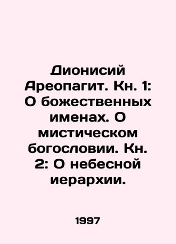 Dionysius the Areopagite. Book 1: On divine names. On mystical theology. Book 2: On the heavenly hierarchy. In Russian /Dionisiy Areopagit. Kn. 1: O bozhestvennykh imenakh. O misticheskom bogoslovii. Kn. 2: O nebesnoy ierarkhii. In Ancient Greek and Russian. Series: Foundations of Christian Culture. Introductory article, preparation of Greek texts and Russian translation by G.M. Prokhorov (1st book) and M.G. Ermakova (2nd book). We have thousands of titles and often several copies of each title may be available. Please feel free to contact us for a detailed description of the copies available. SKUalbbbf79184410842c8.