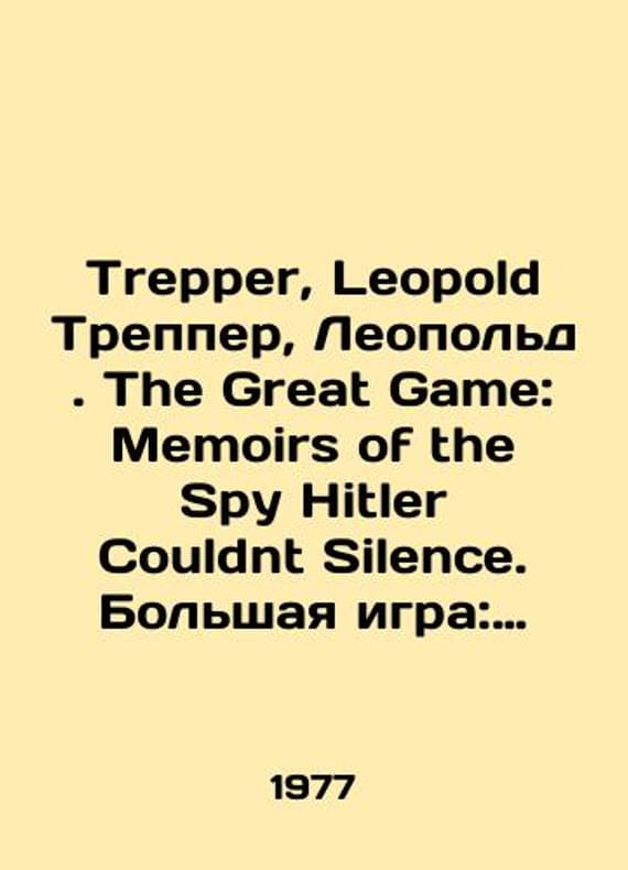 Trepper, Leopold Trepper, Leopold. The Great Game: Memoirs of the Spy Hitler Couldnt Silence. The Big Game: The Memoirs of the Spy Hitler Couldnt Silence. In Russian /Trepper, Leopold Trepper, Leopold. TheGreat Game: Memoirs of the Spy Hitler Couldnt Silence.Bolshaya igra: Memuary shpiona, kotorogo Gitler ne smog zastavit zamolchat. US McGraw-Hill, 1977 xii, 442c. We have thousands of titles and often several copies of each title may be available. Please feel free to contact us for a detailed description of the copies available. SKUalbbc53c35181e3d70a.