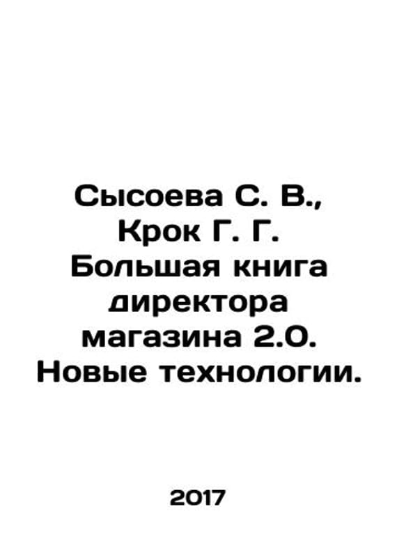Sysoeva S. V., Krok G. G. Big book of store director 2.0. New technologies. In Russian /Sysoeva S. V., Krok G. G. Bolshaya kniga direktora magazina 2.0. Novye tekhnologii. Series: Retail Trade. St. Petersburg. St. Petersburg. St. Petersburg. 2017. 464 p. We have thousands of titles and often several copies of each title may be available. Please feel free to contact us for a detailed description of the copies available. SKUalbbc5f0f274cc24f65.