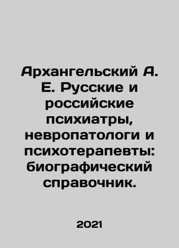 Arkhangelsky A. E. Russian and Russian psychiatrists, neurologists and psychotherapists: a biographical reference book. In Russian /Arkhangelskiy A. E. Russkie i rossiyskie psikhiatry, nevropatologi i psikhoterapevty: biograficheskiy spravochnik. St. Petersburg Aleteiya 2021 268 pp. We have thousands of titles and often several copies of each title may be available. Please feel free to contact us for a detailed description of the copies available. SKUalb483eaea1812ca9f2.