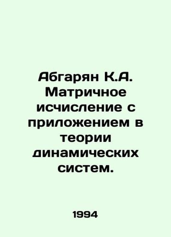 Abgaryan K.A. Matrix calculus with application in the theory of dynamic systems. In Russian /Abgaryan K.A. Matrichnoe ischislenie s prilozheniem v teorii dinamicheskikh sistem. M. Fizmatlit 1994. 544 p. We have thousands of titles and often several copies of each title may be available. Please feel free to contact us for a detailed description of the copies available. SKUalbbc767923494c65f0.