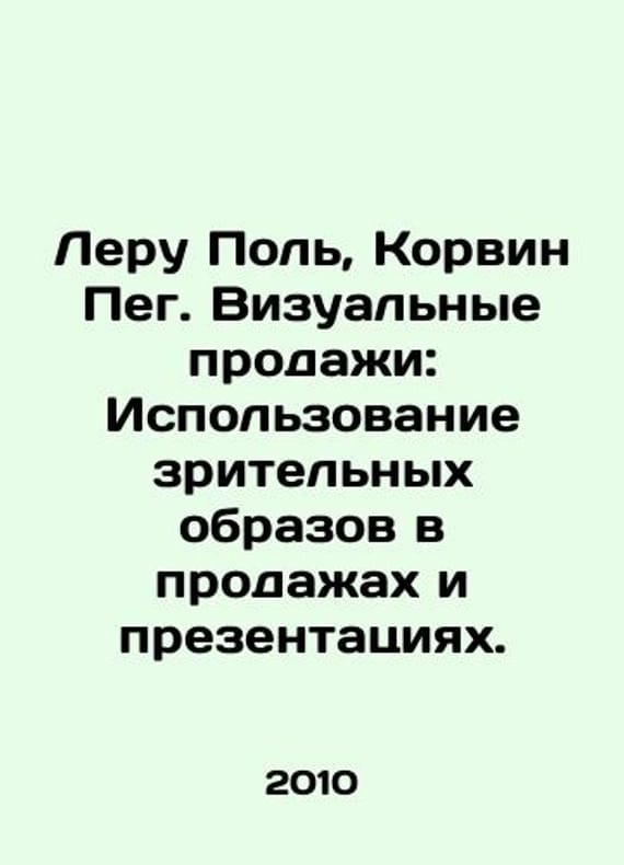 Leroux Paul, Corvin Peg. Visual sales: The use of visual images in sales and presentations. In Russian /Leru Pol, Korvin Peg. Vizualnye prodazhi: Ispolzovanie zritelnykh obrazov v prodazhakh i prezentatsiyakh. M. The Good Book 2010.We have thousands of titles and often several copies of each title may be available. Please feel free to contact us for a detailed description of the copies available. SKUalbbc9bf2ca5a2835e3.