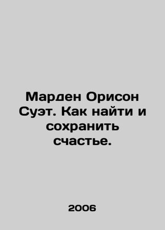 Marden Orison Suet. How to find and preserve happiness. In Russian /Marden Orison Suet. Kak nayti i sokhranit schaste. Series: Library of Practical Psychology. M. ACT. Transit book, 2006. 269 3 p. We have thousands of titles and often several copies of each title may be available. Please feel free to contact us for a detailed description of the copies available. SKUalbbcd5693f79e17897.