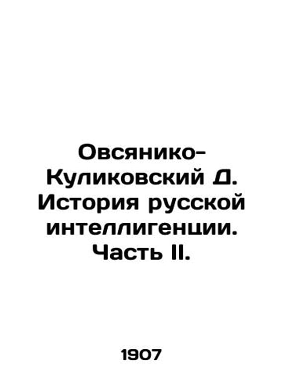 Ovsyaniko-Kulikovsky D. History of Russian Intellectuals. Part II. In Russian /Ovsyaniko-Kulikovskiy D. Istoriya russkoy intelligentsii. Chast II. M. 1907. We have thousands of titles and often several copies of each title may be available. Please feel free to contact us for a detailed description of the copies available. SKUalbbcde01809555deac.