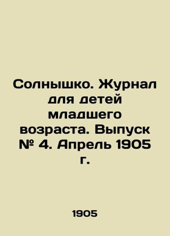 The Sun. Journal for Young Children. Issue # 4. April 1905. In Russian /Solnyshko. Zhurnal dlya detey mladshego vozrasta. Vypusk # 4. Aprel 1905 g. Editor-publisher Alexey Almedingen. S-Petersburg. Typo-Lithography by A.K. Weyerman. 1905. 32 p. We have thousands of titles and often several copies of each title may be available. Please feel free to contact us for a detailed description of the copies available. SKUalbbcffd6e91a93c9b7.