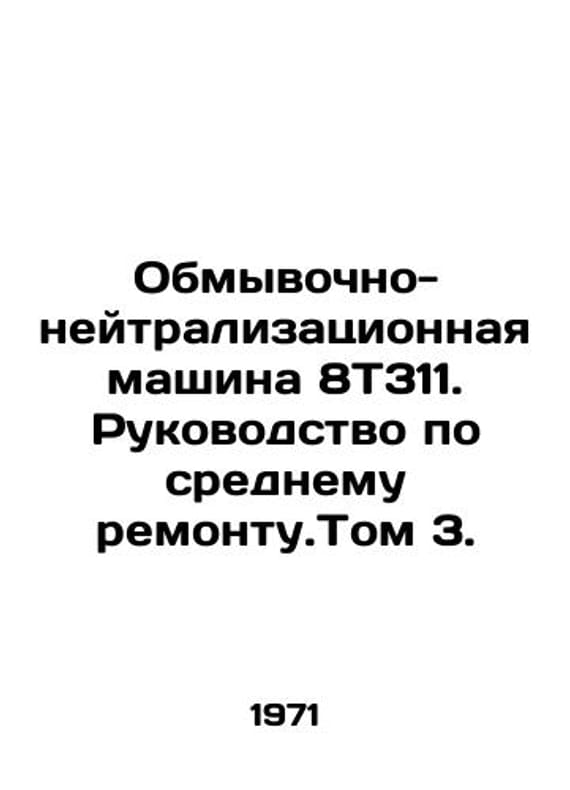 Wash-neutralizing machine 8T311. Average repair manual. Volume 3. In Russian /Obmyvochno-neytralizatsionnaya mashina 8T311. Rukovodstvo po srednemu remontu.Tom 3. M. Ministry of Defense of the USSR 1971, 393s. We have thousands of titles and often several copies of each title may be available. Please feel free to contact us for a detailed description of the copies available. SKUalbbd5228fc5ce40ad2.
