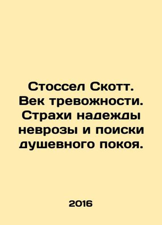Stossel Scott: An Age of Anxiety, Fear of Hope, Neurosis, and the Search for Peace of Mind. In Russian /Stossel Skott. Vek trevozhnosti. Strakhi nadezhdy nevrozy i poiski dushevnogo pokoya. M ANF. 2016 416 pp. We have thousands of titles and often several copies of each title may be available. Please feel free to contact us for a detailed description of the copies available. SKUalbbdbc7c986b06865f.