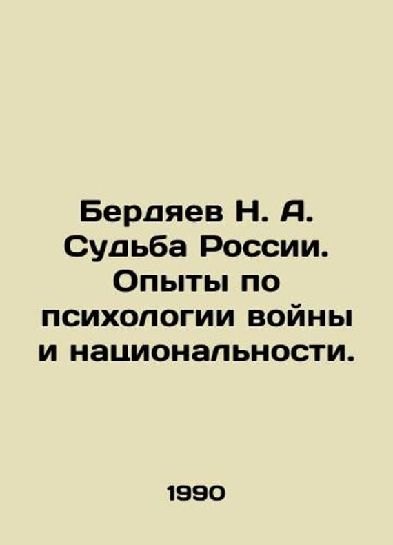 Berdyaev N. A. The Fate of Russia. Experiences in the psychology of war and nationality. In Russian /Berdyaev N. A. Sudba Rossii. Opyty po psikhologii voyny i natsionalnosti. Reprinting of the 1918 Edition: The Publication of G. A. Lehman and S. I. Sakharov. Moscow 1918. Moscow. Moscow University Publishing House. (Moscow State University Publishing House). 1990. 256 p. We have thousands of titles and often several copies of each title may be available. Please feel free to contact us for a detailed description of the copies available. SKUalbbde2a9d47e355b14.