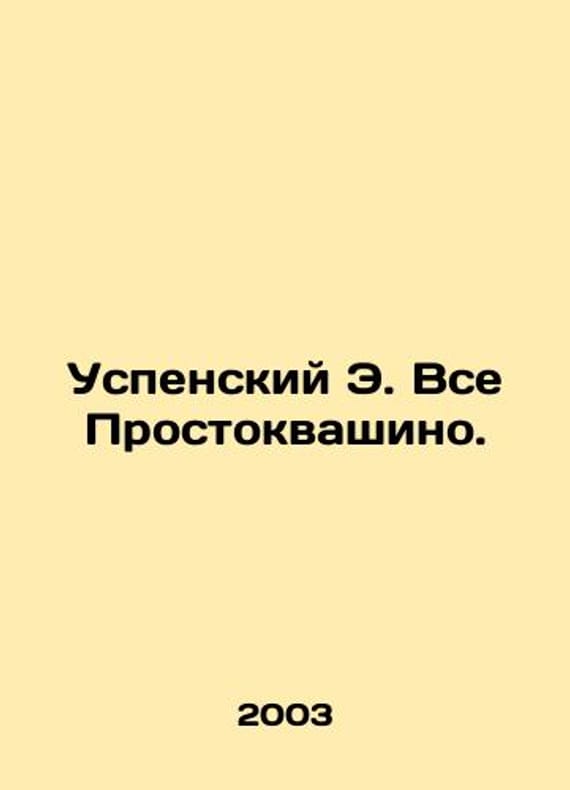 Assumption E. All Prostokvashino. In Russian /Uspenskiy E. Vse Prostokvashino. M. Childhood Planet 2003.We have thousands of titles and often several copies of each title may be available. Please feel free to contact us for a detailed description of the copies available. SKUalbbe48435ecfad68aa.