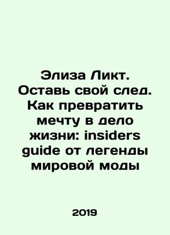 Eliza Likt. Make your mark: How to turn a dream into a reality: an insiders guide from a fashion legend In Russian /Eliza Likt. Ostav svoy sled. Kak prevratit mechtu v delo zhizni: insiders guide ot legendy mirovoy mody M. Exmo 2019.We have thousands of titles and often several copies of each title may be available. Please feel free to contact us for a detailed description of the copies available. SKUalbbe4a3865dcee7495.