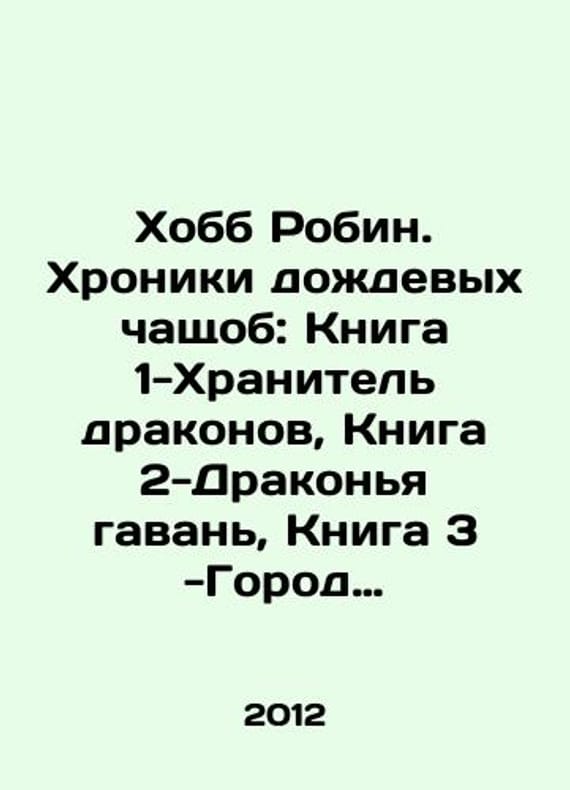 Hobb Robin. The Chronicles of the Rain Chapel: Book 1-Dragon Keeper, Book 2-Dragon Harbor, Book 3-City of Dragons, Book 4-Dragon Blood. In Russian /Khobb Robin. Khroniki dozhdevykh chashchob: Kniga 1-Khranitel drakonov, Kniga 2-Drakonya gavan, Kniga 3 -Gorod drakonov, Kniga 4-Krov drakonov. Series: Fantasy Book. Moscow, St. Petersburg Exmo, Domino 2012-2015. We have thousands of titles and often several copies of each title may be available. Please feel free to contact us for a detailed description of the copies available. SKUalbbe4e06a94421f94f.