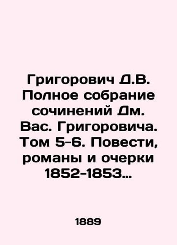 Grigorovich D.V. Complete collection of works by D.Grigorovich. Volume 5-6. Stories, novels and essays from 1852-1853. Migrants. A novel from the national life. In Russian /Grigorovich D.V. Polnoe sobranie sochineniy Dm. Vas. Grigorovicha. Tom 5-6. Povesti, romany i ocherki 1852-1853 gg. Pereselentsy. Roman iz narodnogo byta. S-Petersburg. 1889. We have thousands of titles and often several copies of each title may be available. Please feel free to contact us for a detailed description of the copies available. The delivery of this book might be delayed beyond the usual timeframe due to extended processing and preparation before shipment, and faster shipping opSKUalbbe753033a69f6553