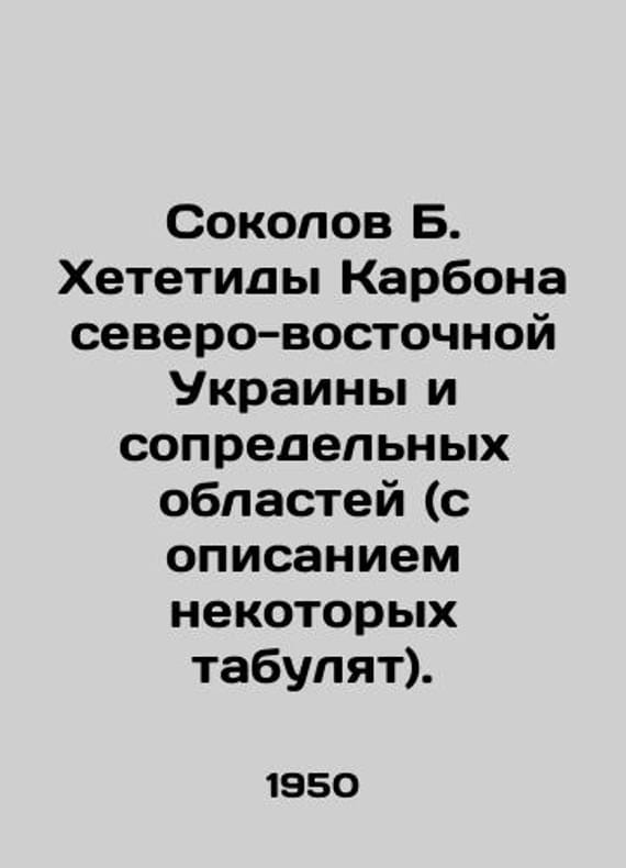 Sokolov B. Hetetida Carbon of northeastern Ukraine and adjacent regions (with description of some tabulates). In Russian /Sokolov B. Khetetidy Karbona severo-vostochnoy Ukrainy i sopredelnykh oblastey (s opisaniem nekotorykh tabulyat). The book is the first major monograph on hetetides. It confirms the priority of Soviet paleontology in the study of this most interesting group of fossil organisms, whose representatives were discovered and first described by Russian scientists more than a century ago. The book is intended for geologists and paleontologists, as well as for students of geological and exploration universities. We have thousands of titles and often several copies of each title may be available. Please feel free to contact us for a detailed description of the copies available. SKUalbbe9321d1eb001cb5.