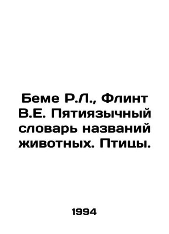 Beme R.L. Flint V.E. The Five-Language Dictionary of Animal Names. Birds. In Russian (ask us if in doubt)/Beme R.L. Flint V.E. Pyatiyazychnyy slovar nazvaniy zhivotnykh. Ptitsy.Latin Russian English German French. 11060 titles edited by Academician V.E. Sokolov. SKUalbbf0d82eb9b25e7bf.